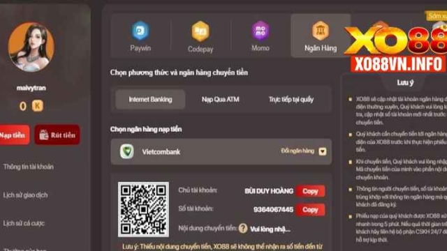 Làm thế nào để nạp tiền vào tài khoản tại XO88?
